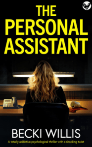 The Personal Assistant is a fast paced psychological thriller, with suspense and intrigue. This was my first Becki Willis book, and I was hooked by her engaging writing style. The plot was innovative, with plenty going on, and I didn’t find it predictable at all. While I was initially taken aback by the secondary storyline (when you read it – you’ll know), it ended up adding another dimension the plot of which the psychology behind was intriguing.